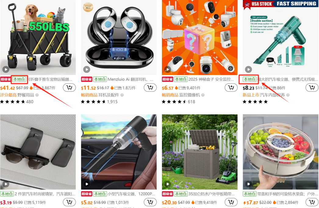 目前,Temu“推荐商品”页面以及各个“细分类目”页面上的商品,都是清一色的“本地仓”标志,这意味着从中国直发的全托管商品,在Temu美国站消失了。