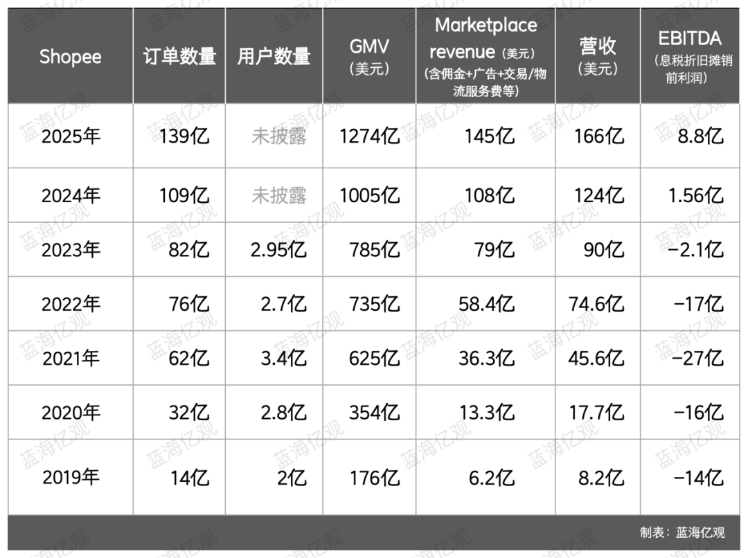 Shopee的EBITDA(息税折旧摊销前利润),从2024年的1.56亿美元,迅速上升到2025年的8.8亿美元。