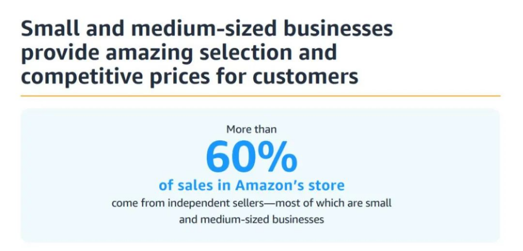 这是因为,亚马逊必须保护它的200万第三方卖家尤其是中小卖家,因为其平台上超过60%的销售额,来自于第三方卖家,其中大部分都是中小型企业(卖家)。