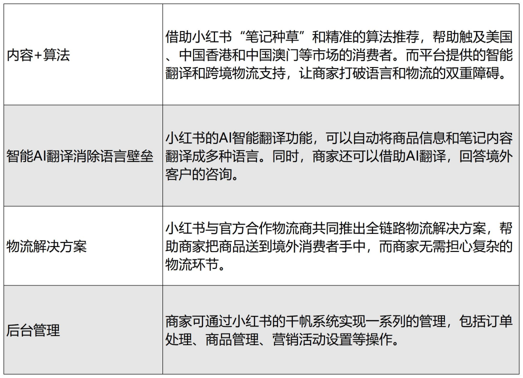 3月10日,小红书正式启动"电商出海领航计划",首期覆盖美国、中国香港、中国澳门等市场。小红书官方称,将重点依托“内容+社区”的优势,整合“线上交易、跨境支付及本土化运营”等全链路服务,帮助商家“突破地域限制,直接触达全球用户”。(文末扫码,入小红书跨境电商群,加微信egainnews666,领小红书后台操作流程)小红书此次正式试水跨境电商,已经在信息流(流量获取、客服沟通、后台管理)、物流(跨境配送)、资金流(跨境支付)等基础设施方面做好了准备。 在信息流方面,小红书通过其颇具特色的“笔记种草”和“算法推荐“,帮助商家获取精准流量。小红书提供了AI智能翻译工具,帮助商家自动将“商品信息”和“笔记内容”翻译成多种语言(服饰/鞋靴等类目的商家,建议在商品详情页补充部分境外尺寸的图片)。在客服方面,商家也可以通过AI工具,回答境外客户的咨询。在运营方面,小红书的千帆系统,提供了订单处理、商品管理、营销活动设置等功能。海外消费者下单后,后台会筛选出国际订单,提示商家进行操作。在物流方面,小红书与一批物流商达成了合作,共同推出全链路物流解决方案。商家只需将商品寄送至小红书指定的转运仓,剩余的清关、物流运输等全部由小红书完成,而税费、国际运费由境外消费者承担。在支付方面,商家无需开设外汇账户。小红书的系统,会自动生成不同市场对应币种的参考价格。商家无需承担换汇手续费、汇损等,出单后,小红书平台会最终以人民币,结算到商家境内账户。从这些方面来看,小红书已经在基础设施方面下了大功夫。不过,该出海计划仍处于内测阶段,采用了定向邀请的方式。商家可以在小红书千帆后台的商品功能菜单栏,查看有没有出海出海领航计划的模块,以确定是否被邀约。如果被邀约了,可以选择“开启出海”或“暂停出海”,并编辑商品的可销售区域、商品质量、商品信息等。据透露,小红书将根据内测情况,逐步扩大商家招募范围,但具体的开放时间、招募标准等尚未确定,仍需等待官方的