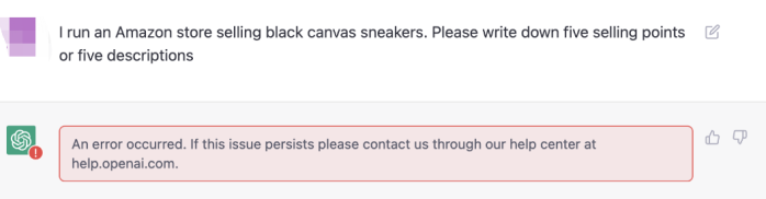 有可能是该卖家的使用场景、设备、IP的问题,也有可能ChatGPT一时反应不过来。