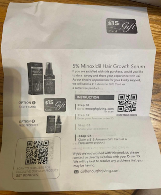 比如上文说的,扫码获得奖励,某某美元的礼品卡兑现等等。这种操作,亚马逊比较难抓住把柄。