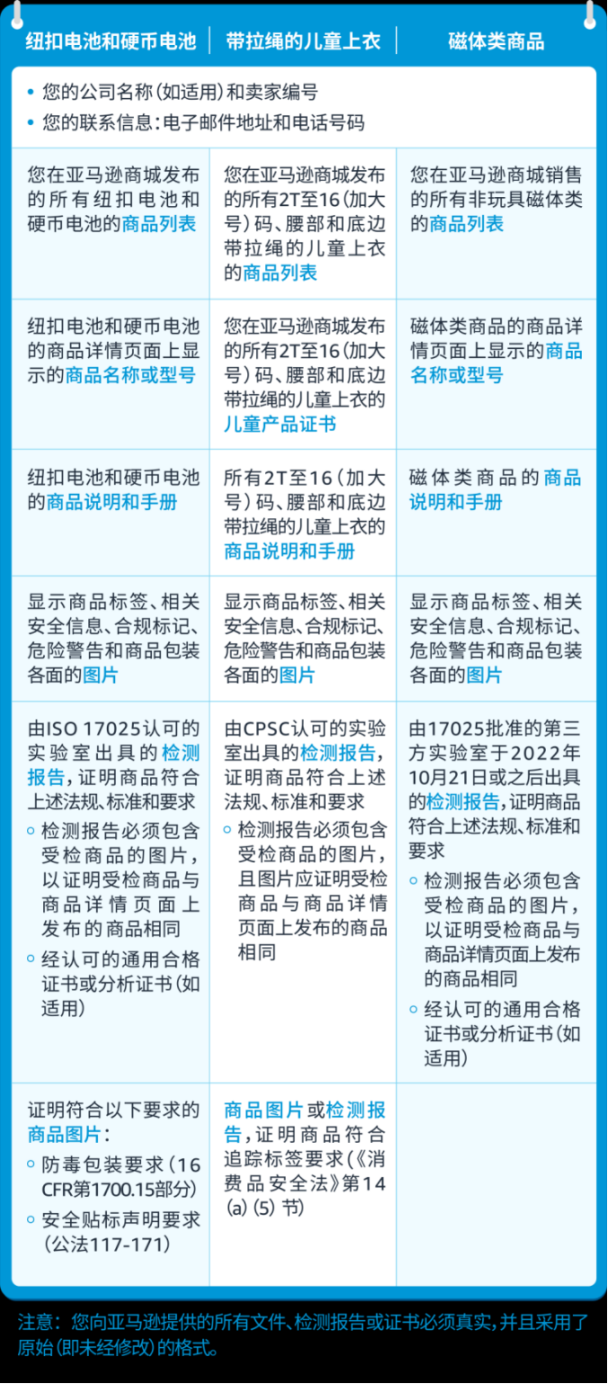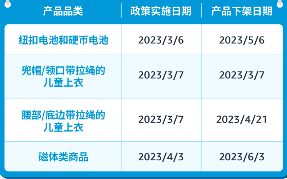 这三个品类的卖家要按期提交合规文件并成功通过审核,否则产品可能会被下架。各类产品提交时间和下架时间如下: