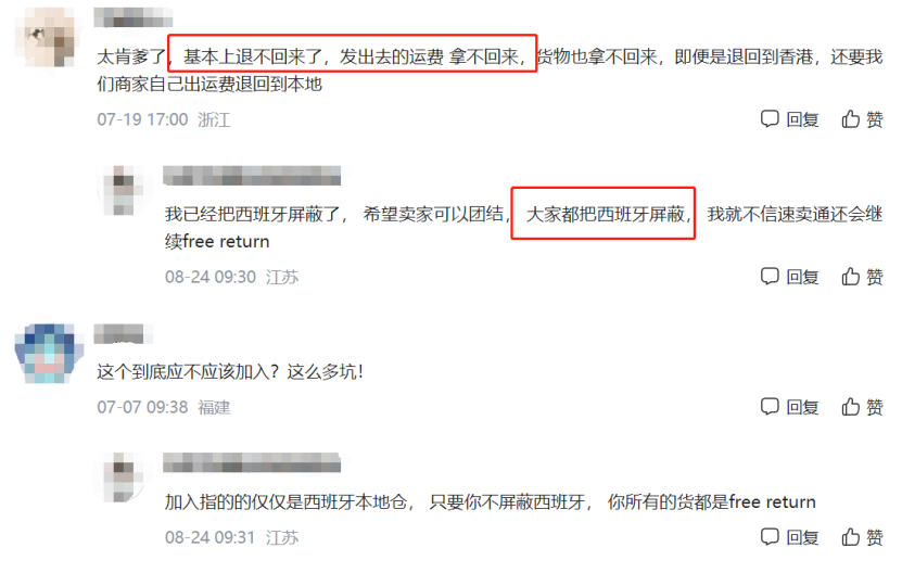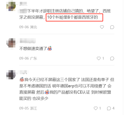 一些无法接受该新规的卖家,选择了将西班牙站点屏蔽——奉陪不起,就干脆这个站点的生意都不做了。