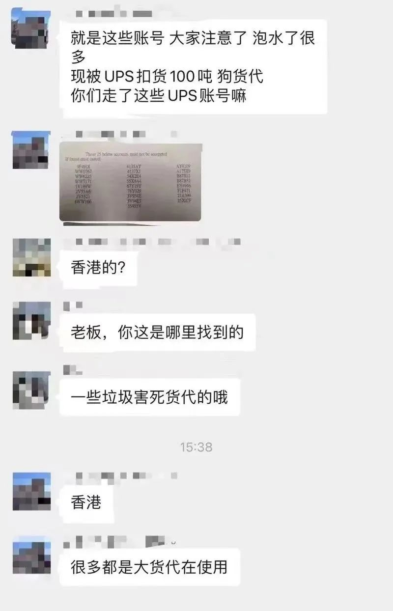 被查出扣押的货物高达100吨,对跨境卖家们的损失不言而喻,因卖家无法及时将产品送到海外仓,进而导致无法按时发货,影响卖家的订单履约,甚至下架Listing,以及受到平台的处罚等等。如果卖家要求按货值进行赔付,那么货代公司将面临巨额赔款。目前,被UPS找出来的跑水账号一共有25个,提取后的货物被UPS扣留在香港机场。根据截图显示,这些账号将不被UPS接受,而且,一旦发现货物与跑水账号相关联,将被取消提货。